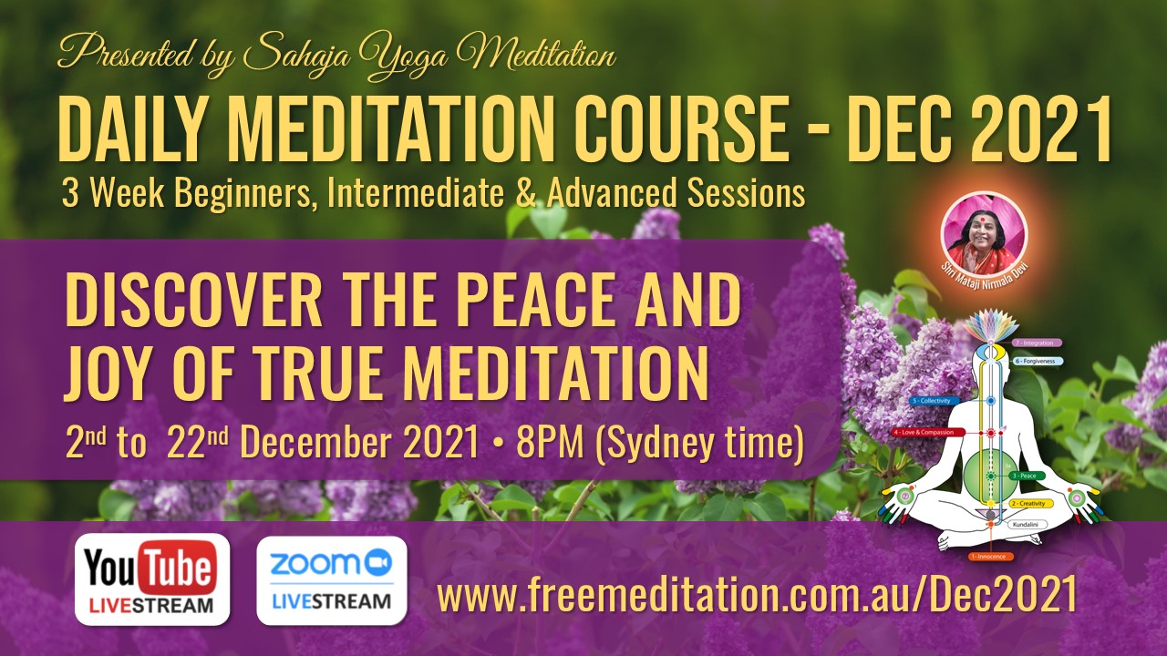 Over the 3 weeks, participants will be guided by the Victorian online team through the three levels of knowledge and meditation experience from Beginner to Intermediate to Advanced. One on one help and workshops, with group practice, will be available.