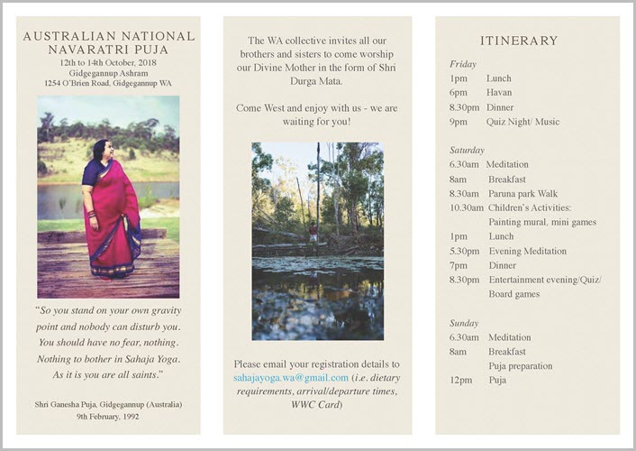 Please email your registration details to sahajayoga.wa@gmail.com (i.e. dietary requirements, arrival/departure times, WWC Card)