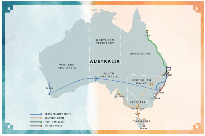 Tours routes of the 2019 Meditate Australia Tour