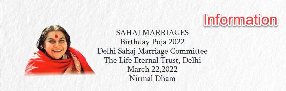 As we know, Life Eternal Trust (LET) Delhi will organise Sahaj Marriages on March 22,2022 during Birthday Puja in Delhi. Kindly find links to the information booklet and the marriage forms below.
