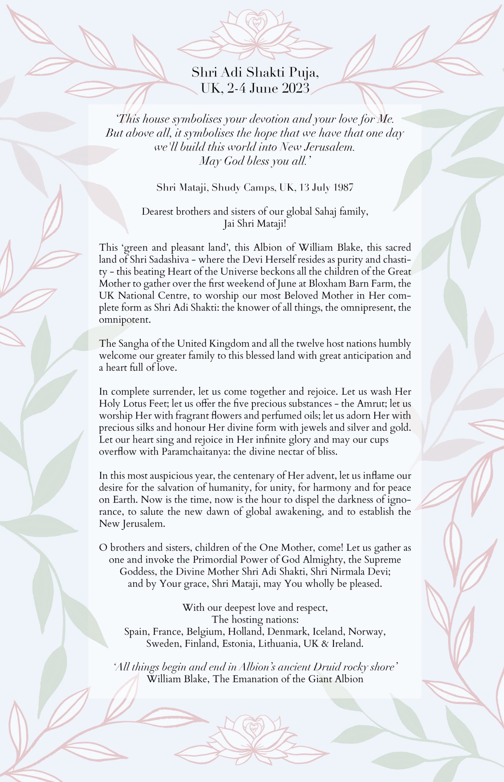 Please see attached Invitation and web site registration link for International Shri Adi Shakti Puja June 2023.