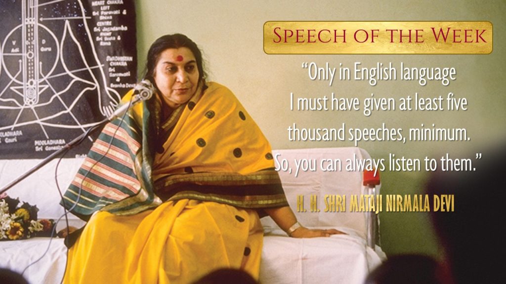 We have introduced a “Speech of the Week” for the collective to focus on and to raise our collective consciousness as we all focus on the same directive from Her Holiness Shri Mataji.