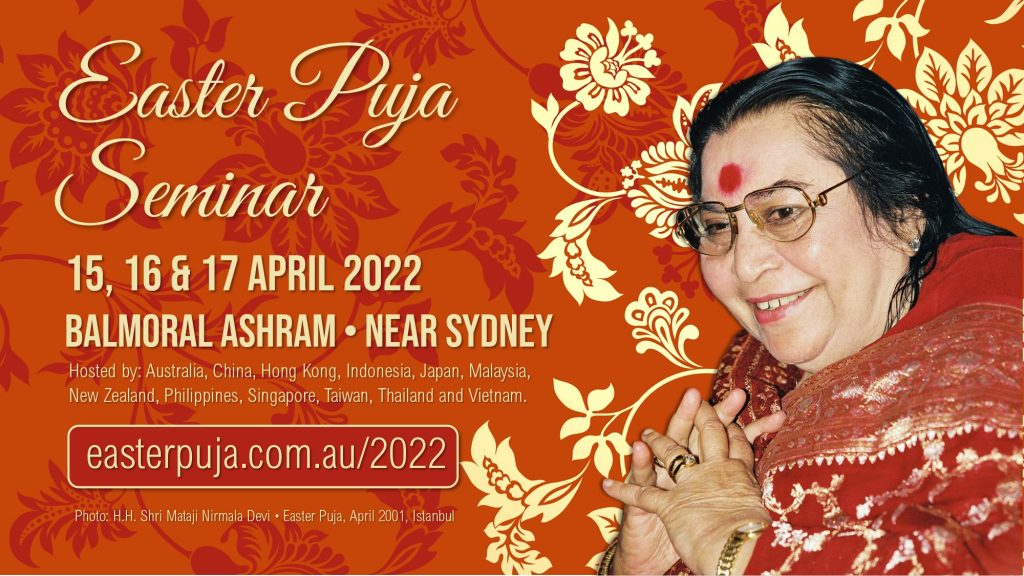We, the Sahaja Yogis of Australia, New Zealand, Japan, Indonesia, Singapore, China, Thailand, Taiwan, Hong Kong, Malaysia, Vietnam and the Philippines, humbly request Your attendance at the International Easter Puja to be offered to You on the 17th of April 2022 at Your Balmoral Ashram in Australia.