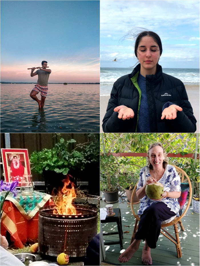 (Lyn Vasudeva, Andre Maynard, Pranav Rawal, Jahnavi Rawal, Rennie Berry, Nathan Berry, Shaun Premnath, Kartikeya DeValle, Alex Horry, Baptiste Riches, Sadhana Kapodistrias, Madhu Gaikwad, John Davies, Sue Nickson, Kush More, Vimal Nambiar, Bhargav Sridhar, Brett Johnson, Madhavi Muskat, Shivani Williams, Croiagh Foo, Vijaya Bhasale, Jing Yuan Low, Vivian Looi, Madhavi Shete, Akula Smiley, Astrid Fleay, Jenny Zappavigna, Debbie Miller, Coralie Jessop, Madhava Huet, Qasim Rashid, Devindra Payment and every participating yogi/yogini.)