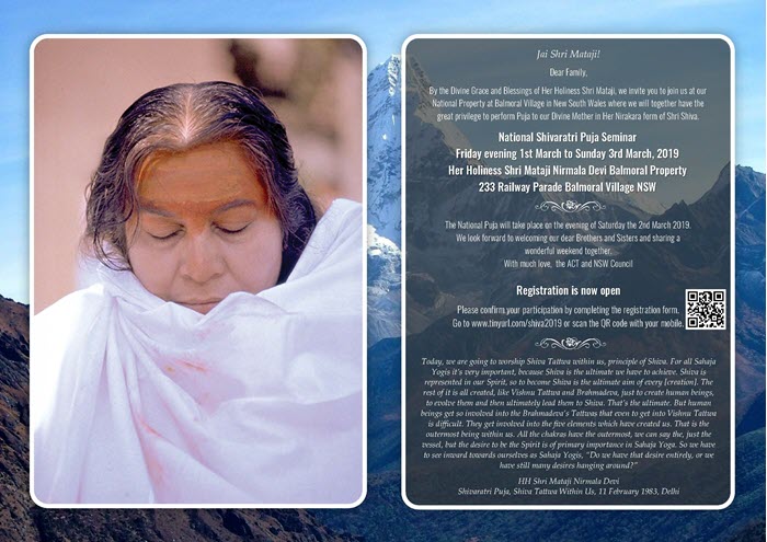By the Divine Grace and Blessings of Her Holiness Shri Mataji, we invite you to join us at our National Property at Balmoral Village in New South Wales where we will together have the great privilege to perform Puja to our Divine Mother in Her Nirakara form of Shri Shiva.