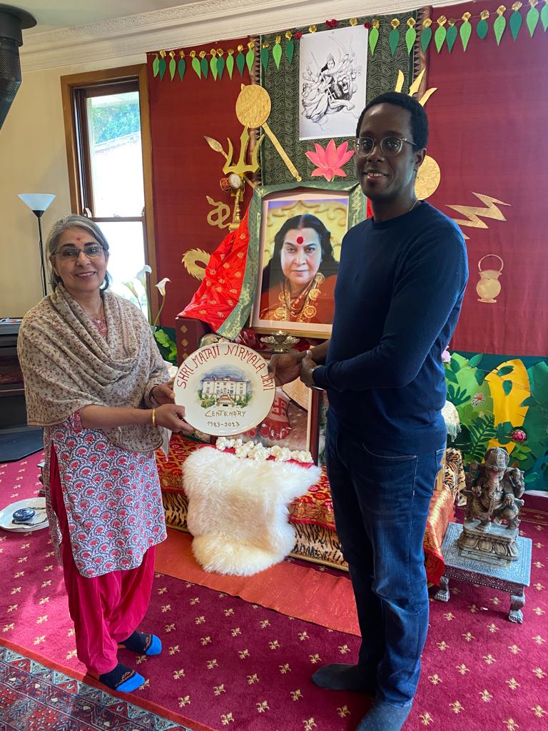 The plate has been presented onward to the Canberra Collective to keep in the Canberra ashram. The Canberra Yogis had a wonderful Public Program on 27 October at the National Press Club to celebrate Shri Mataji’s life and 100th Birthday. And so it was a fitting time for them to receive this gift on behalf of Australia. Below is a photo of our Canberra Councillors holding the gift at the ashram.