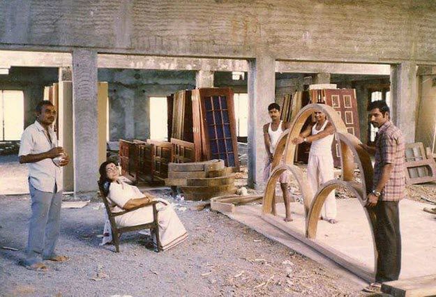 Even before the house was ready She moved into a make shift room above the garage to supervise the construction. Six months later, Her husband, Sir C.P. Srivastava retired as Secretary General of International Maritime organisation and they temporarily shifted to a suite of rooms on the first floor. Six months later they shifted to the top floor. When the ground floor was finally completed, She moved into the Peacock Room (The current bedroom).