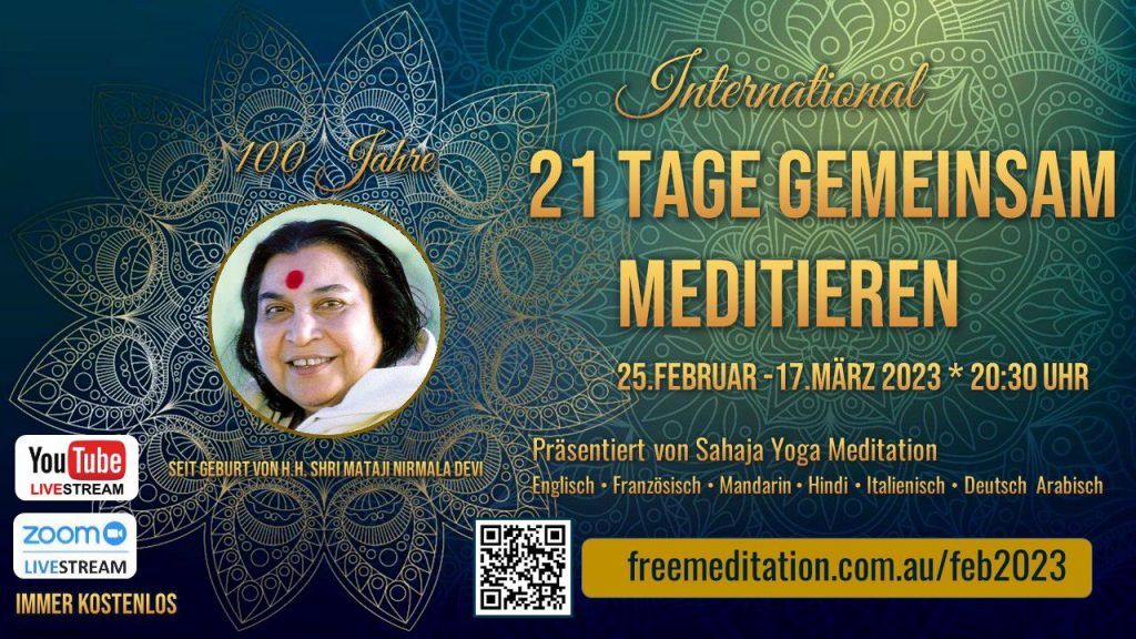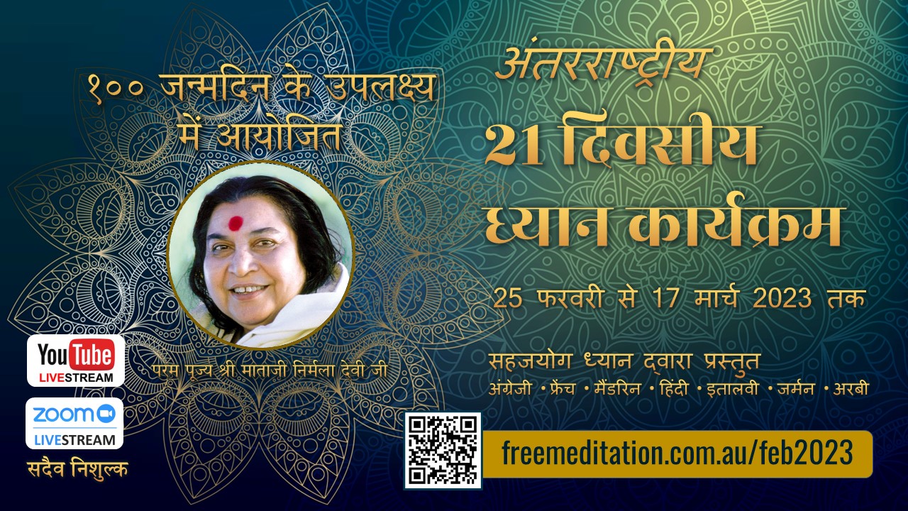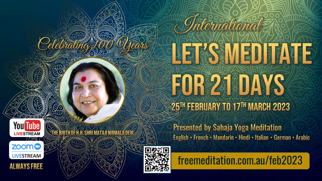 On this auspicious occasion of Shri Mataji’s 100th Birthday, Yogis from around the world are joyfully working together to prepare and present multilingual 21 Day Global Meditation Programs for seekers which will commence on 25th February 2023.