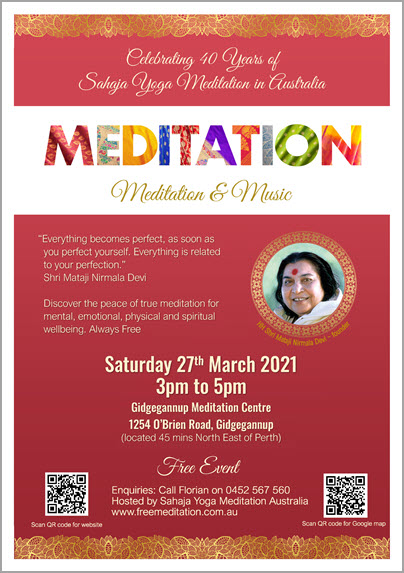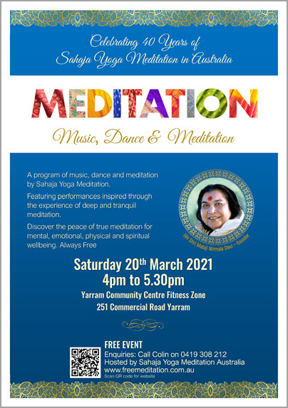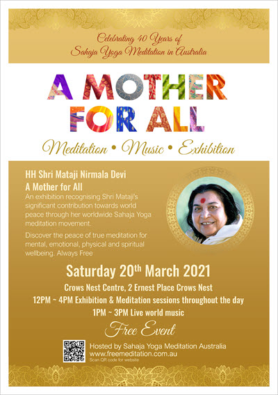 This month, we celebrate 40 years of Sahaja Yoga in Australia. To mark this auspicious event, we are hosting public events in honour of our Divine Mother, Her Holiness Shri Mataji Nirmala Devi.
