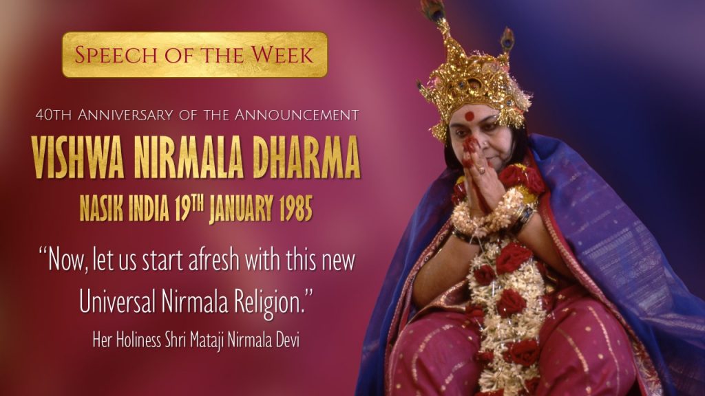 On 19th January, we celebrate the 40th anniversary of when Shri Mataji first announced ‘Universal Nirmala Religion’ (Vishwa Nirmala Dharma) at Nasik India.