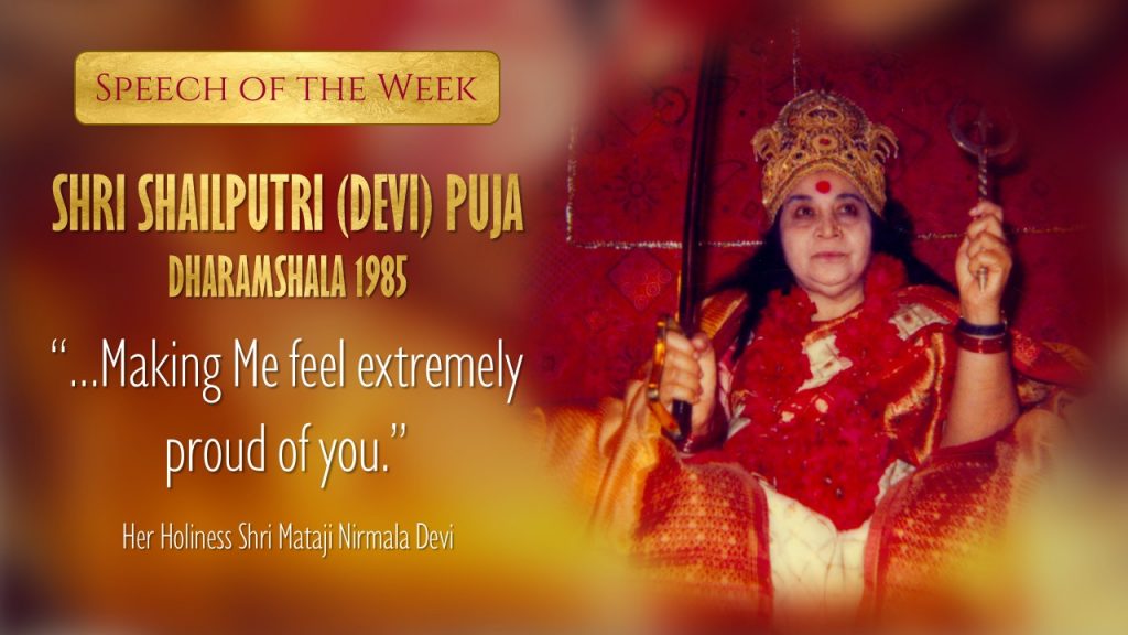 Please see this week’s speech below, set in Dharamsala and includes a Puja to HH Shri Mataji as Shri Shailaputri.
