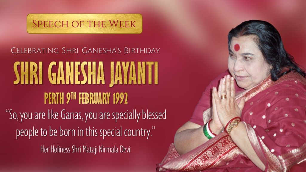 In Australia, Shri Mataji held a Public Program in Fremantle, Western Australia on Shri Ganesha Jayanti in 1992 and then held Shri Ganesha Puja at Her Gidgegannup Ashram the following day.