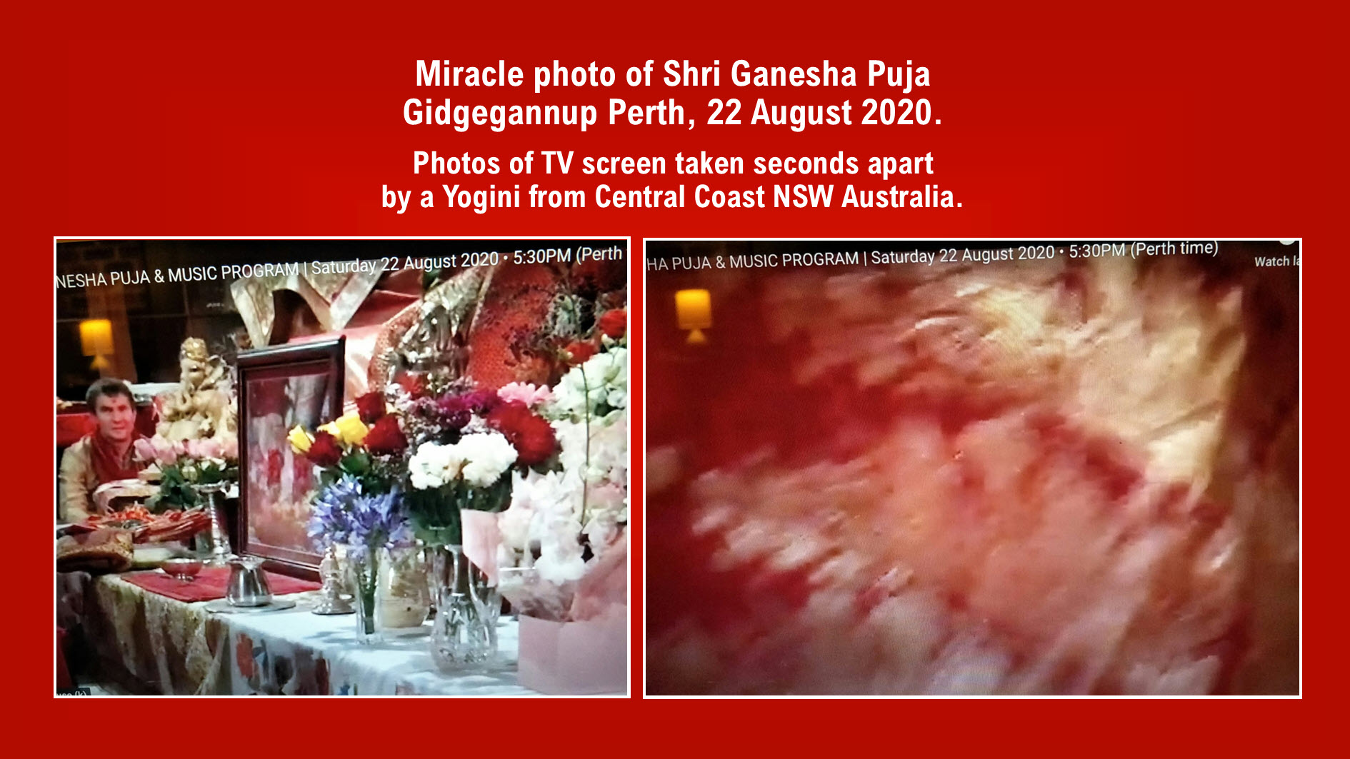 Miracle photo taken from TV of Shri Ganesha Puja in Gidgegannup WA on 22 August 2020