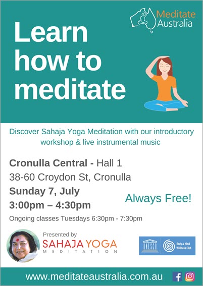 There has not been a Sahaja Yoga program in this area for a very long time, so this is an important opportunity to give Seekers from this area their Self Realisation at the Sunday Workshop, followed by the new Cronulla weekly programs.
